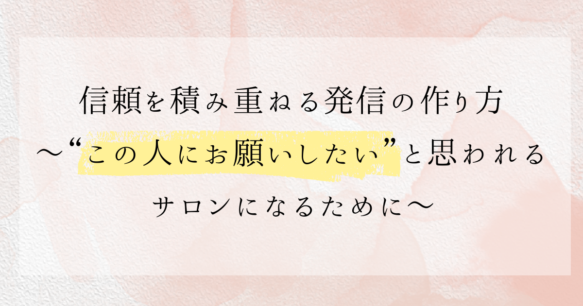 そう思ってもらえるサロンは、発信の裏に“信頼の積み重ね”があります。