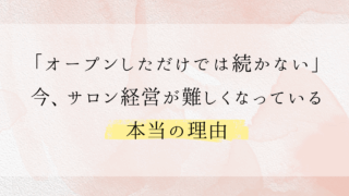 脱・売れないサロン思考 「オープンしただけでは続かない」──今、サロン経営が難しくなっている本当の理由 はじめに最近、サロンをオープンする人が本当に増えています。SNSを見ても「新しくオープンしました✨」という投稿をよく見かけますよね。なぜなら、多くの人がこう思っているからです。「技術さえあればお客様は来てくれる」実はこの考えこそが、最初の落... 2025.10.07 脱・売れないサロン思考