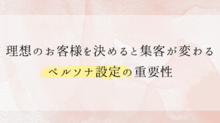 売上を安定させる考え方 理想のお客様を決めると集客が変わる|ペルソナ設定の重要性 はじめに「ターゲットは決めているのに、集客が安定しない…」そんな悩みを抱えていませんか?実はそれ、ペルソナ設定ができていないこと が原因かもしれません。ターゲットは「30〜40代女性」「子育てママ」など“層”を表しますが、ペルソナはその中か... 2025.09.28 サロン集客の基本売上を安定させる考え方無料で学べる情報